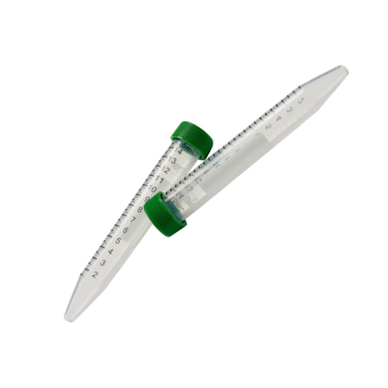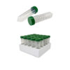 - Číre, sterilné, polypropylénové skúmavky so závitom a zeleným uzáverom z HDPE (High density polyethylén)