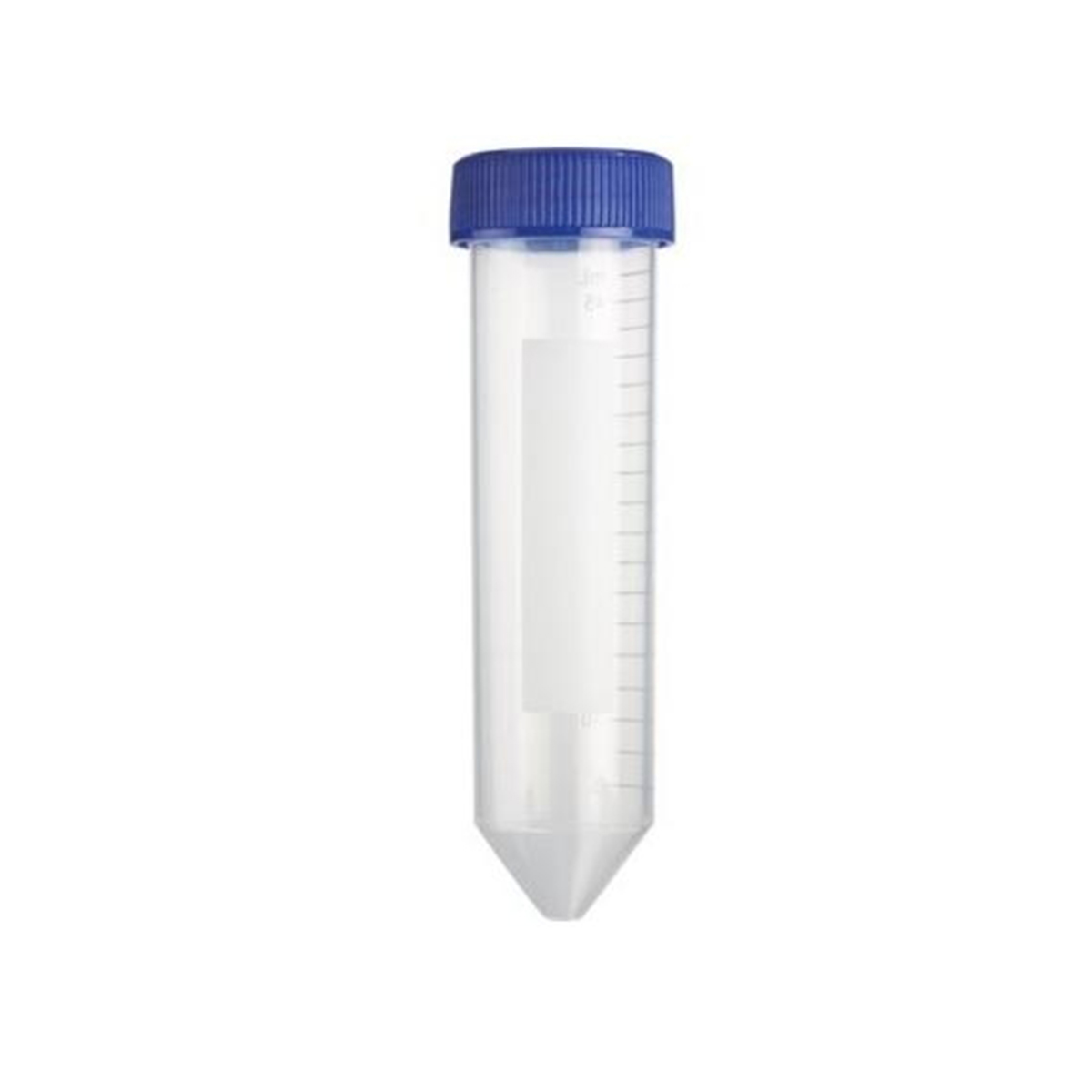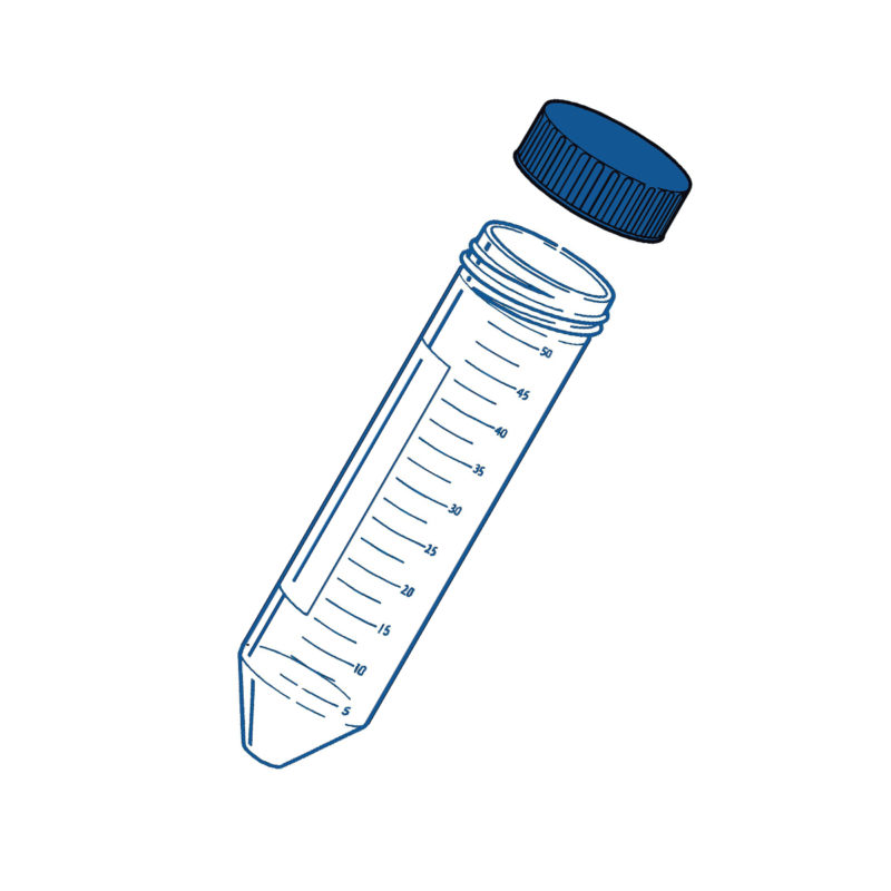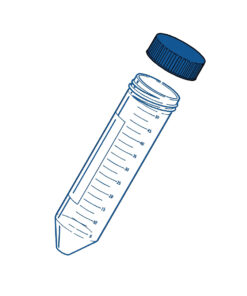 - Číre, sterilné, polypropylénové skúmavky so závitom a modrým z HDPE (High density polyethylén)