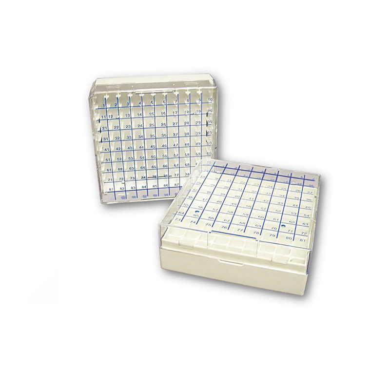 Polykarbonátové 81- alebo 100-miestne kazety s pevnou separačnou mriežkou v dolnej časti na jednotlivé skúmavky a priehľadným vrchnákom s vyznačenou identifikáciou pozícií. Vo vrchnáku sú vetracie otvory.
