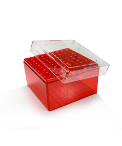 Farebné polykarbonátové kazety vhodné aj do tekutého dusíka s priehľadnými vrchnákmi, znášajúce teplotu -196 °C až +121 °C (sú autoklávovateľné!) Základňa krabíc má rozmery 133x133mm.