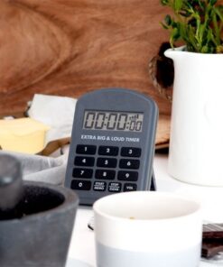 Extra big & loud je šikovný ručný časovač s vodotesným obalom a možnosťou kontroly výšky zvuku alarmu. Pričom dovoľuje používateľovi nastaviť zvuk až do výšky 110 decibelov, čo je veľmi vhodné na využitie v rušných reštauračných kuchyniach, alebo iných hlučných pracoviskách. Po zaznení odpočítavacieho alarmu začne časovač odpočítavať čas, aby ste vedeli, koľko času uplynulo, po zaznení alarmu. Pamäť uchováva 2 posledné nastavenia časovača. Časovač disponuje dvoma magnetickými podložkami a stojanom. Rozmery časovača sú 28 x 90 x 130 mm a na jeho činnosť je potrebná 9 voltová PP3 batéria.