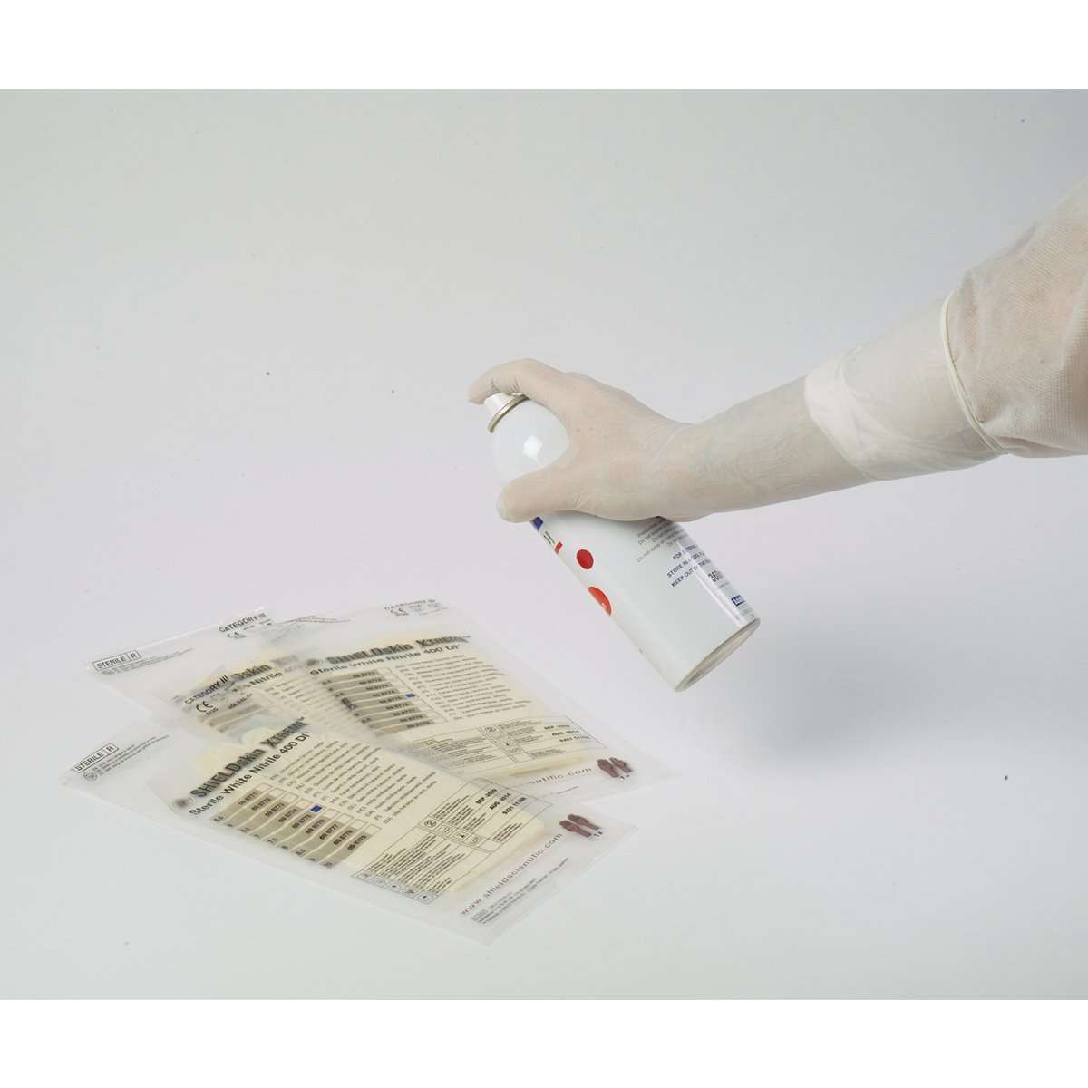 Balenie : 20×8 vreciek – Každý pár rukavíc je balený samostatne! (160 párov : 320 ks). Sterilita : ÁNO Typické úrovne častíc: menej ako 1000 na cm2 ≥ 0,5 um Rukáv : veľmi dlhý – až 400mm Zobraziť komplexnú chemickú odolnosť proti konkrétnym chemikáliám