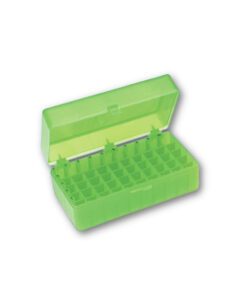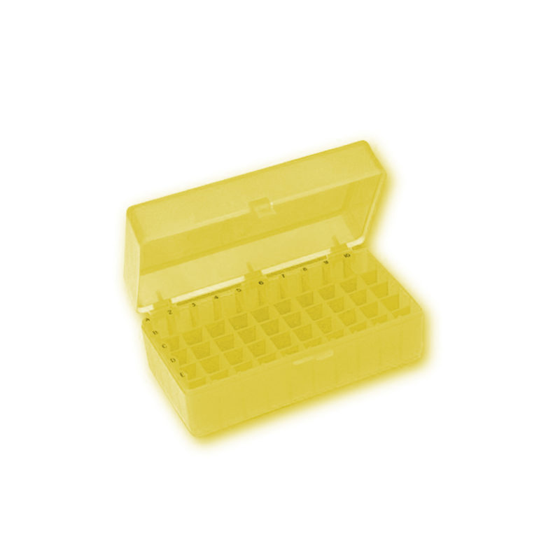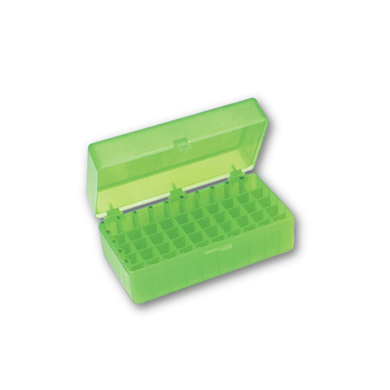 Polypropylénové (PP) krabičky s alfa-numerickým označením pozícií na pevnej mriežke, vymedzujúcej 50 pozícií o rozmeroch 13,0 x 13,0 mm. Tieto krabičky majú základňu z PP prirodzenej farby a vrchnáky s pántami, buď tiež z prirodného alebo zafarbeného PP rôznych farieb.