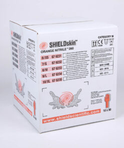 Laboratórne rukavice SHIELDskin ORANGE NITRIL 300 firmy ShieldScientific sú vysokokvalitné rukavice s mierne predĺženým rukávom pre zvýšenú ochranu. Tieto laboratórne rukavice sú vyrábané špeciálnou polymerizáciou s technológiou twinSHIELD. Táto technológia umožňuje vyrábať rukavice z 2 rôznych gúm : nitrilu a neoprénu (neonitril), takže tieto rukavice sú 2 vrstvové, čím sa zabezpečuje ešte vyššia ochrana pred poškodením Vášho zdravia. Tieto rukavice sú naviac vyrábané bez urýchľovačov polymerizácie, takže sú vhodné aj pre ľudí s veľmi citlivou pokožkou.