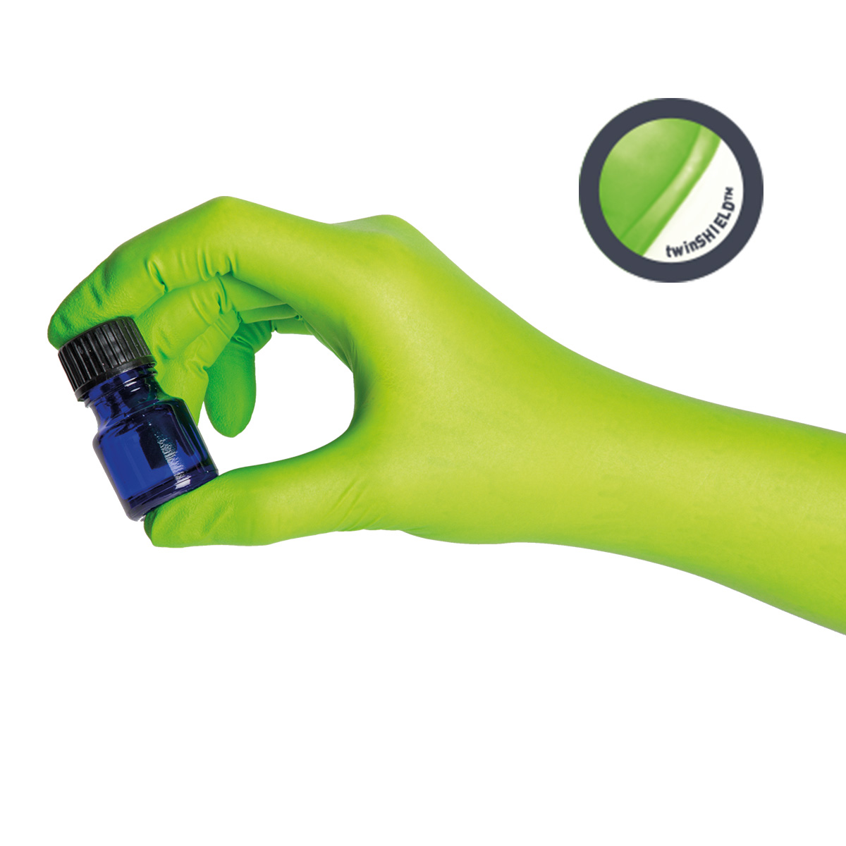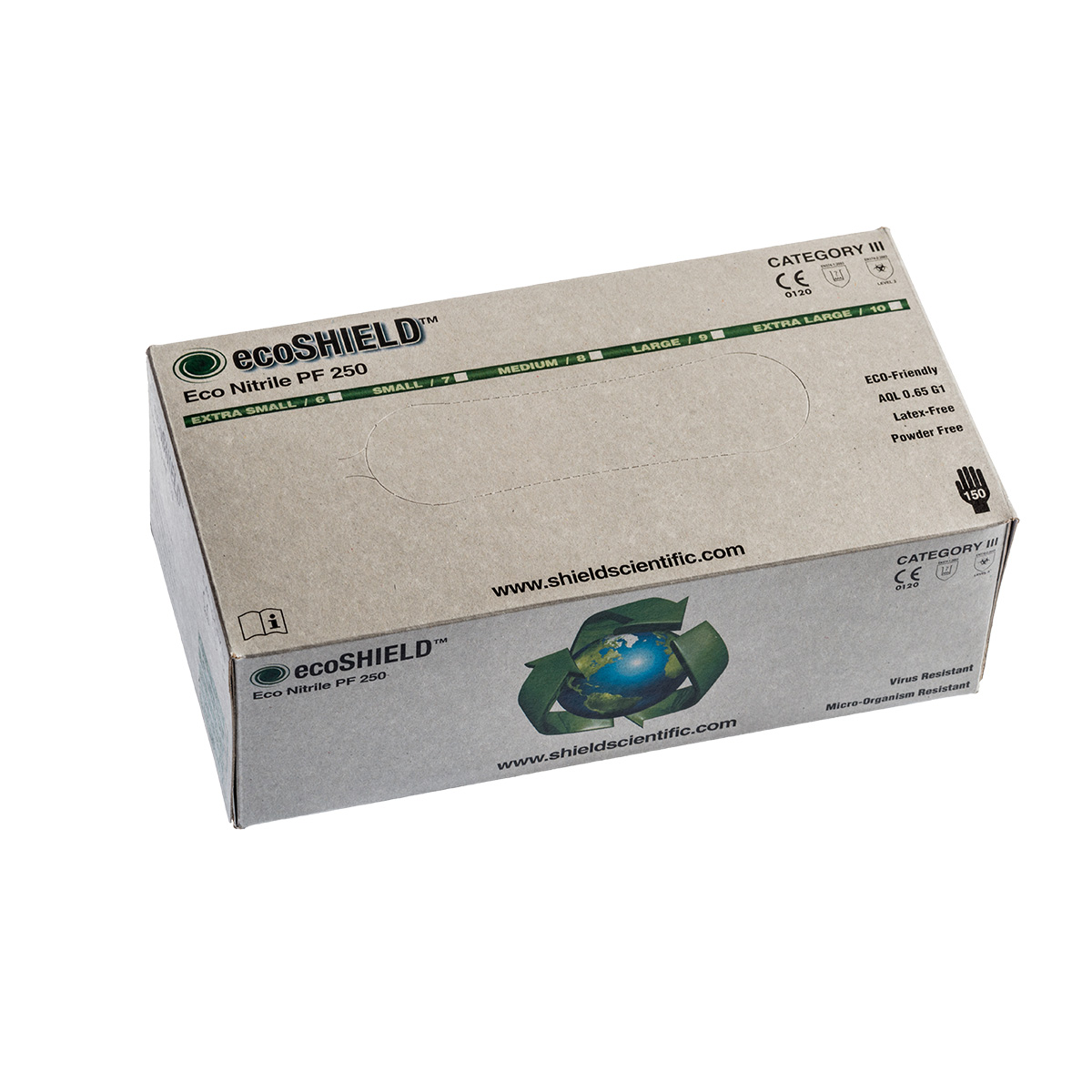 Laboratórne rukavice ecoSHIELD Eco Nitril PF 250 firmy ShieldScientific sa vyznačujú výnimočnou biologickou a tiež základnou chemickou ochranou. Sú vyrábané špeciálnou polymerizáciou s technológiou twinSHIELD. Táto technológia umožňuje vyrábať tieto ochranné rukavice z 2 druhov nitrilu (neonitril), takže tieto laboratórne rukavice sú 2 vrstvové, čím sa zabezpečuje ešte vyššia ochrana pred poškodením Vášho zdravia.