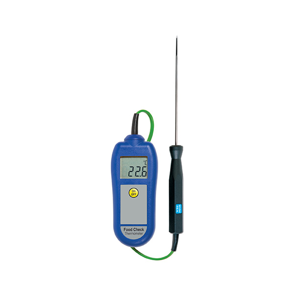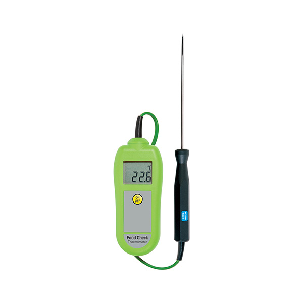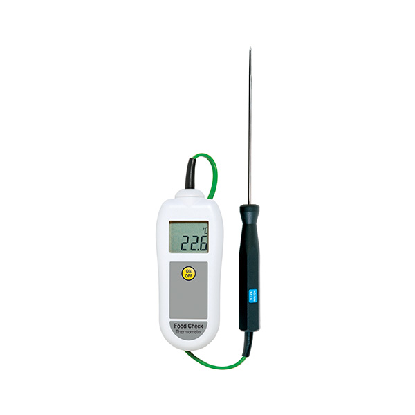 Teplomer Food Check je vybavený veľkým, dobre čitateľným displejom a ergonomicky tvarovaným puzdrom, ktoré je vyrobené z materiálu obsahujúceho prísadu BIOMASTER, ktorá potláča rast mikroorganizmov na jeho povrchu. Teplomerná sonda má dĺžku 130 mm a k prístroju je pevne pripojená káblom dĺžky 500 mm. Obsluha teplomera Food Check je veľmi jednoduchá, prístroj sa vypína automaticky po 10 minútach nečinnosti.