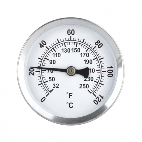 Teplomer  má priemer  60 mm a  kruhovú dvojitú stupnicu priemeru 50 mm. Púzdro teplomera je z antikoru. Meria v rozsahu 0 ºC až +120 ºC s rozlíšením 2 ºC. Teplomer dodávame s antikorovou pružinou dĺžky 53 mm, umožňujúcou jeho jednoduché a rýchle uchytenie na potrubie. V prípade potrubia väčšieho priemeru je možné uchytenie aj iným spôsobom.