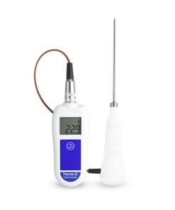Merací systém teplomera Therma 22 je umiestnený v robustnom, no ergonomickom puzdre z ABS plastu a vyznačuje sa, okrem iných vlastností tým, že k nemu možno pripájať aj termistorové, aj termočlánkové sondy (typ T). Puzdro teplomera má vysoké krytie – IP65 a obsahuje prísadu BIOMASTER, zabraňujúcu rastu baktérií. Obsluha prístroja je veľmi jednoduchá. Naviac, tento upozorňuje obsluhu na porušenú sondu a slabú batériu. Teplomerné (termistorové) sondy sú odlučiteľné, takže prístroj umožňuje meranie teploty v rôznych situáciách (s rôznymi sondami) – pozrite, prosím, našu ponuku termistorových sónd