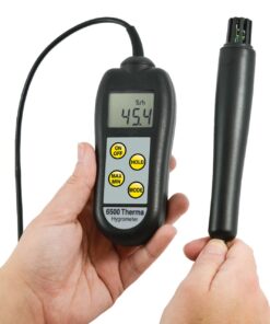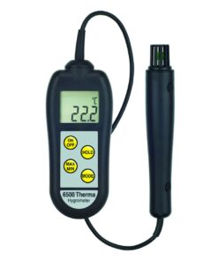 6500 Therma Hygrometer je vybavený prehľadnou a dobre prístupnou membránovou klávesnicou , ktorá umožňuje zvoliť jeho zapínanie (ON/OFF) voliť funkcie °C/°F, MAX/MIN a ďalšie funkcie pomocou tlačidla MODE. Tento teplomer/vlhkomer dodávame so sondou pevne pripojenou k samotnému prístroju káblom s PVC – izoláciou.